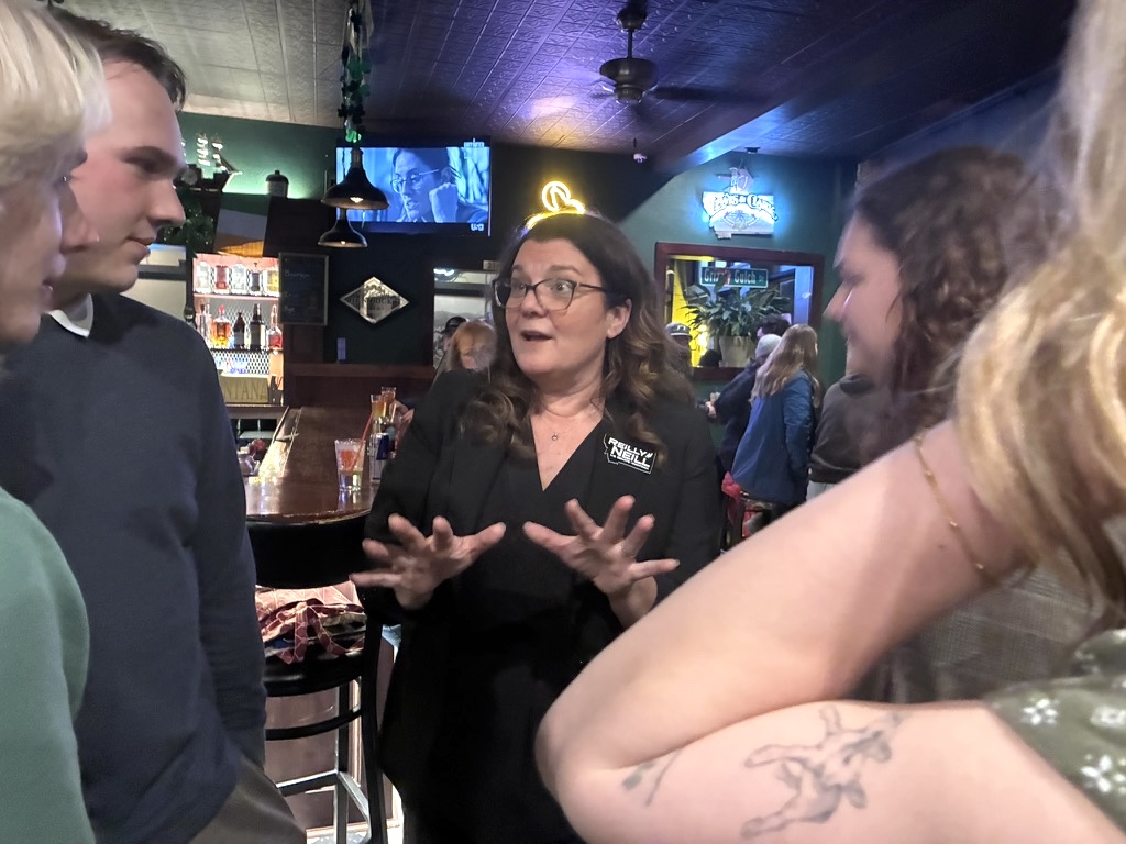 “We need someone honest like Reilly to send to D.C.,” said Qasim Abdul-Baki. A public defender running to represent House District 80, he’s been following Neill’s career since she ran a write-in campaign for House District 62 in 2024.
