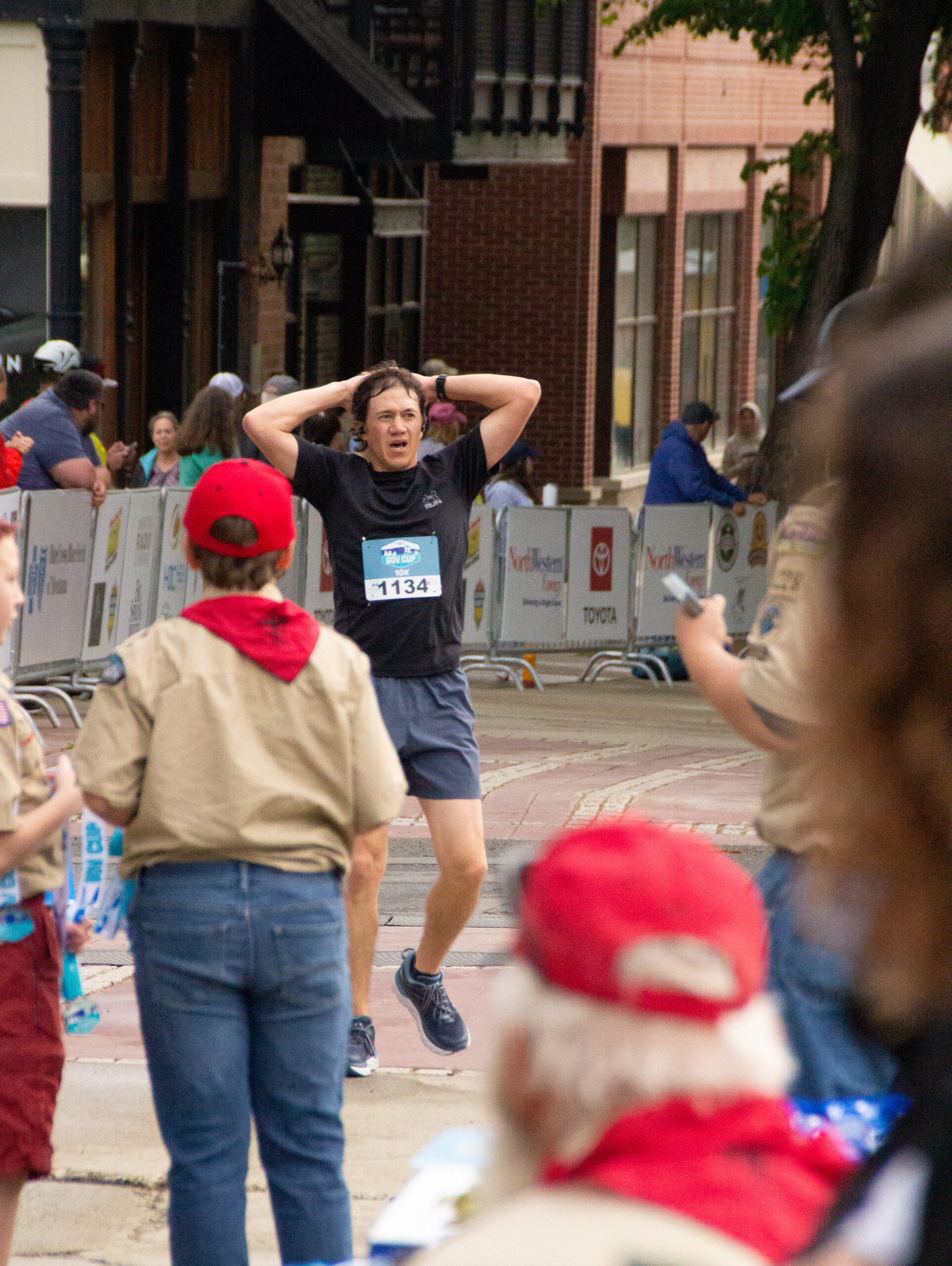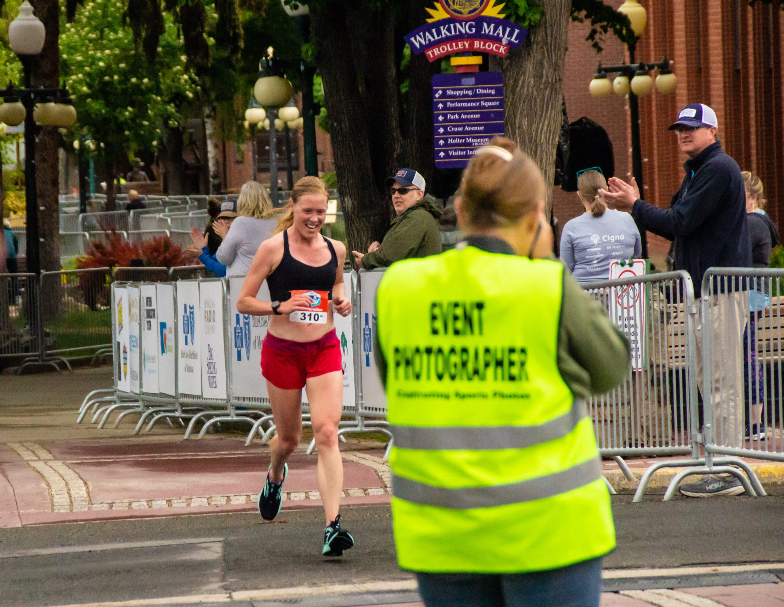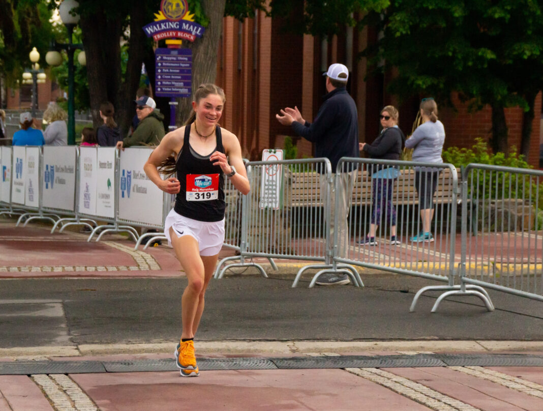 Renae Parker, 17, crosses the finish line on the Helena Walking Mall after completing the 2022 Governor's Cup half-marathon, pictured on June 11.