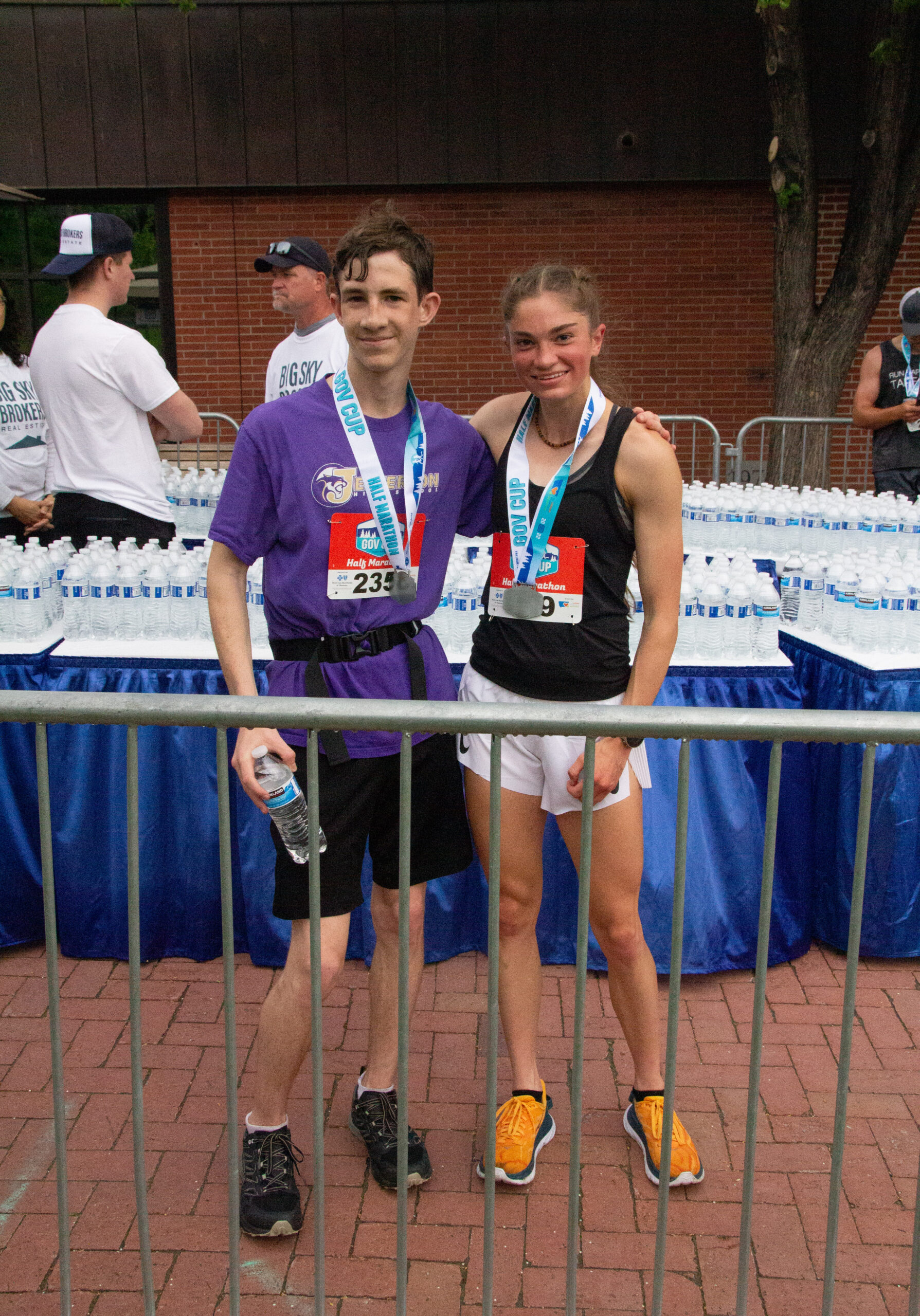 Schwartz, 38, took first place with a time of 1:31:12.07 and Parker, 17, finished in 1:34:22.02.
