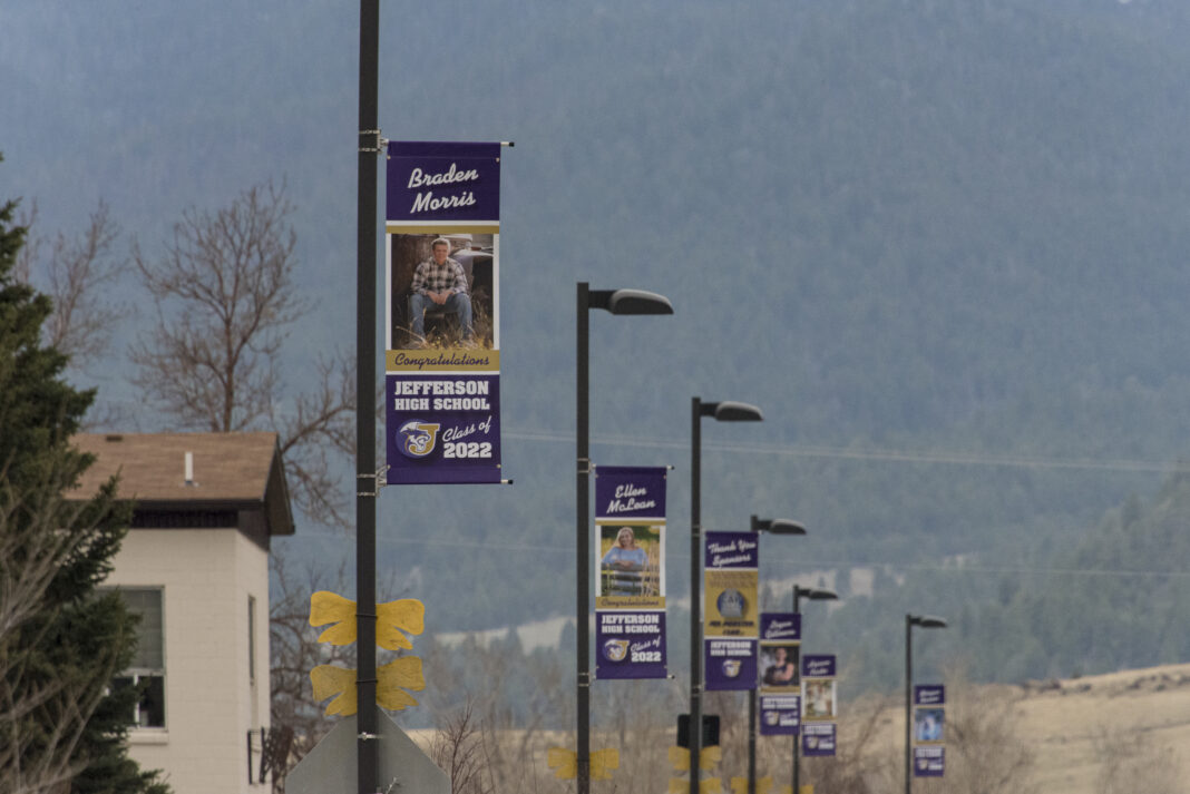 There is a banner for each of the seniors, with a picture of their choice. Desiree Van Blaricom, parent of senior Rachel Van Blaricom, organized the banner production and installation. Van Blaricom said that “after seeing similar things in Butte and Whitehall, I wanted our kids to have that too.” She said she felt the class should have something similar to what other small schools have, and that it’s something fun to recognize the kids.