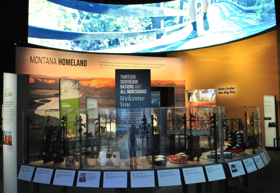 A circular display of shoes opens the Homeland section of the Montana Historical Society's new $107 million Heritage Center (Eliza DuBose/The Monitor).