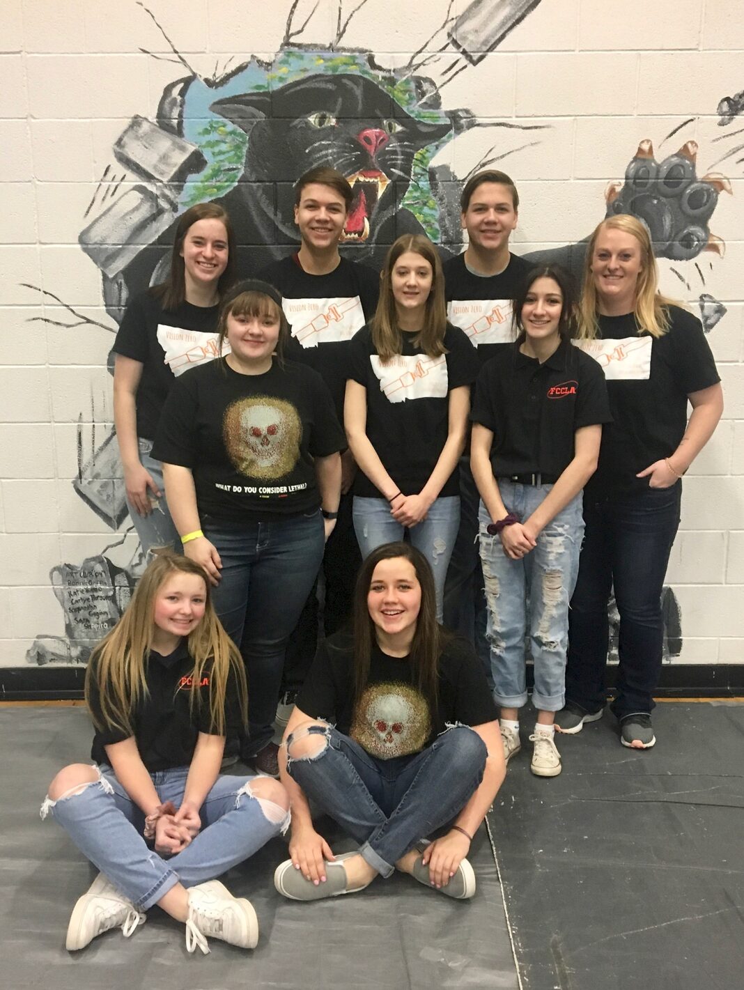 Members of the JHS chapter of Family, Career and Community Leaders of America (FCCLA) pose for a photo during JHS Days at the school. They are, from left: Kati Preskar, Josh Smerker, Jamie Rimestad, Laurynn Armstrong, Megan Knickerbocker, Mattie Bruskern, Hayden Smerker and Keaton Pettis.