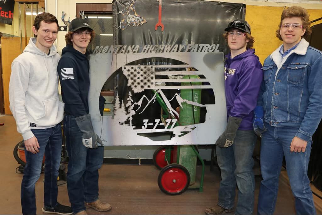 Jefferson High School’s welding classes take time each year to give back to the community, according to Dave Heimann, the school’s welding instructor; this year they did so by working with the Highway Patrol to create a 36-by-42-inch sign for the new offices, located on the North Campus of the former Montana Developmental Center, accessed off of East Fourth Avenue east of JHS. Heimann said he reached out to the Montana Highway Patrol with a proposal for the project. Each year he works some form of community service into his advanced welding classes, he said: A prior project involved crafting a sign for the Boulder Forest Garden.