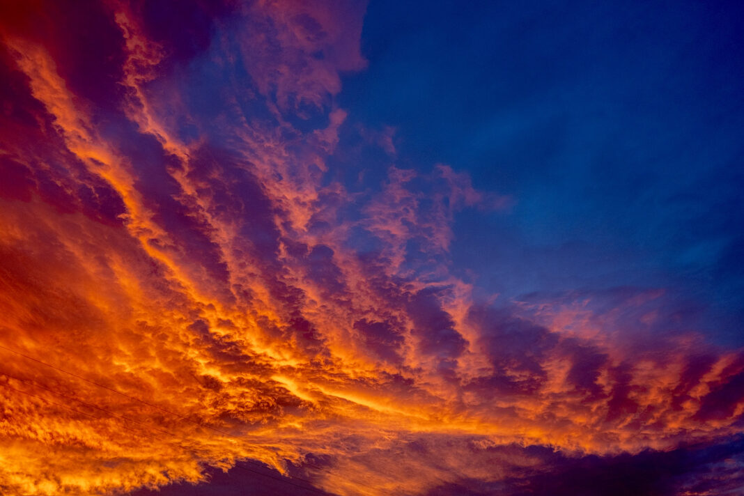 Before appearing over the Elkhorn Mountains east of Boulder Nov. 23, the sun painted clouds in fiery shades.