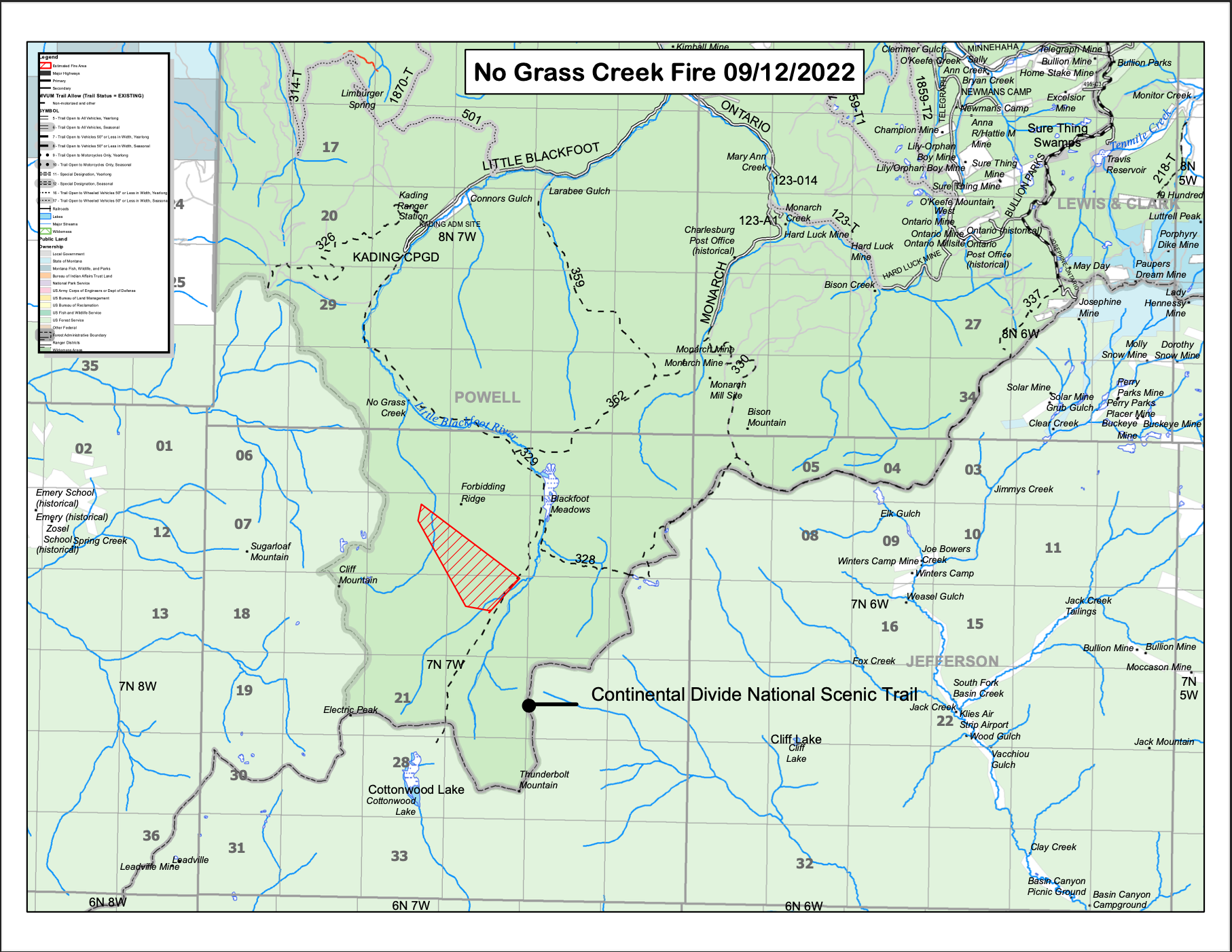 And by Tuesday morning, the No Grass Creek Fire had more than doubled in size. “An [infrared] flight [Monday] night confirmed that the fire is 1,003 acres and grew mostly to the west and northwest,” Chiara Cipriano, public affairs officer for the Helena-Lewis and Clark National Forest told The Monitor. The fire, she said, was just one mile outside of Jefferson County on Monday. Tuesday morning’s map of the fire show that the flames have since moved closer to the county line.