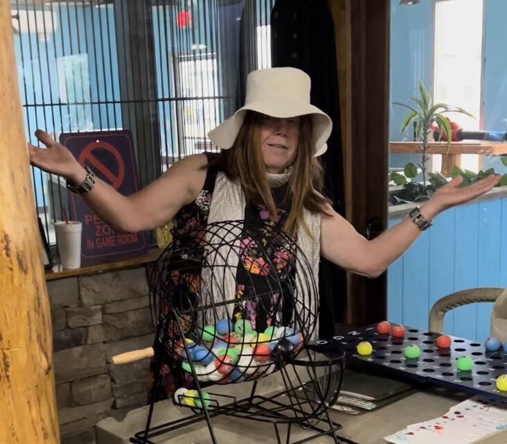 At Bingo night Sept. 7, spirits seemed high at The River, with Billy Bullock the Bingo caller pulling out all the stops, wearing a wig, an oversized hat, a dress and even high heels.