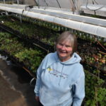 A half-dozen volunteers – friends, neighbors, kids — were raking the trails, picking up branches, watering shrubs, and laying straw to dry up the mud around the nursery. The greenhouses were packed with annuals and perennials, and trees, balled and bare-root, were crammed outside; a truck had delivered 1,300 the day before.