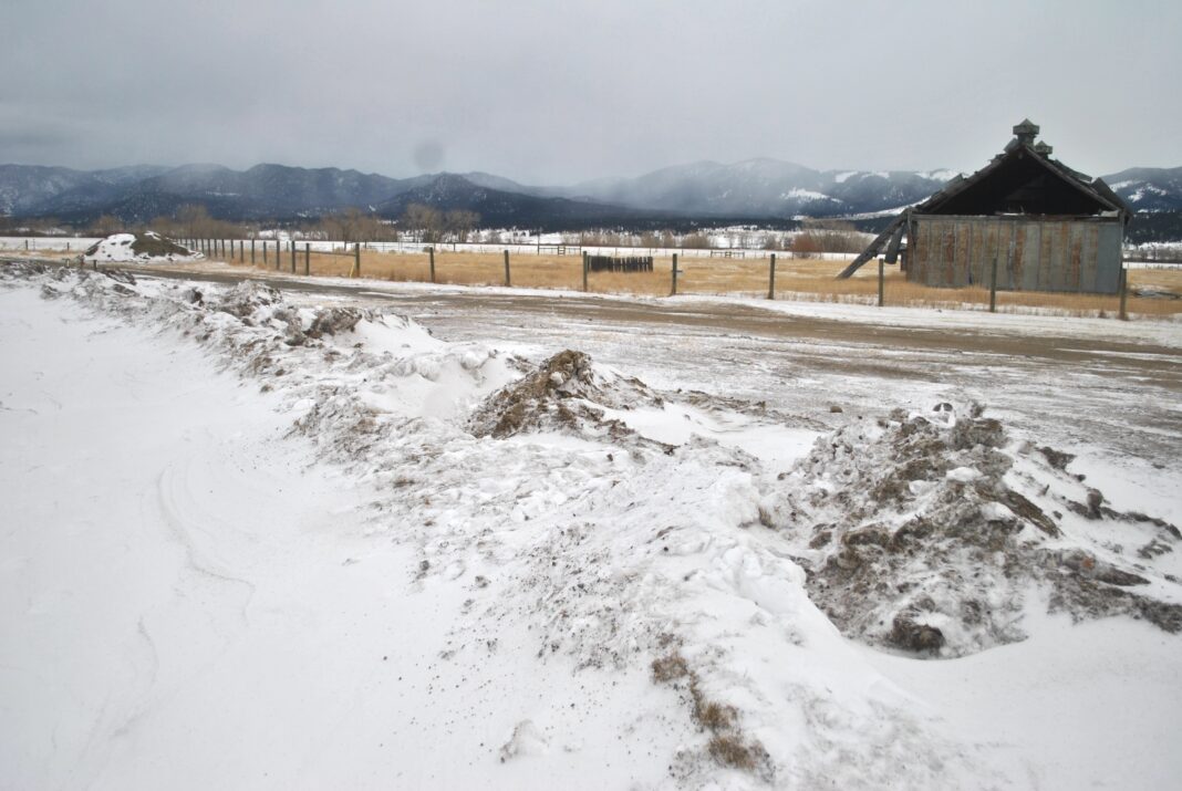 Modest piles of snow await construction of a skijoing track at the Jefferson County fairgrounds.