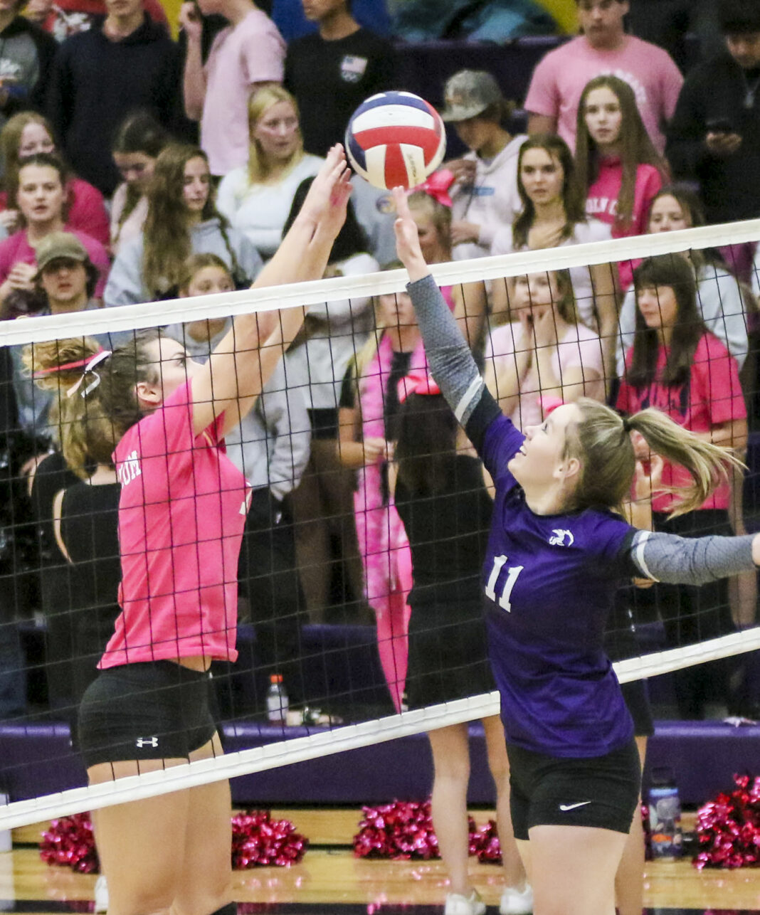 In that one, Whitehall put the first 2 points on the board, but the Panthers responded with the next 6: Rachel Van Blaricom put over a sneak kill to make it 11-6, and from there, Jefferson went on a 14-2 run, capped by a hard kill by Dakota Edmisten to take the win, 25-8.