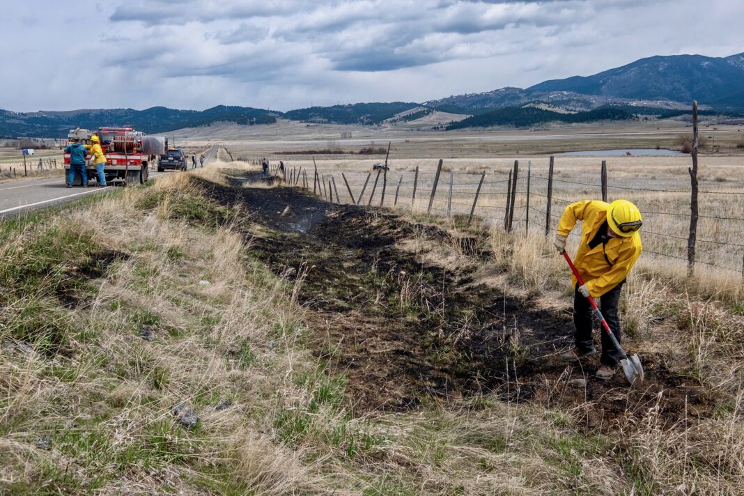 Volunteer firefighters respond to grass fire in Boulder Saturday
