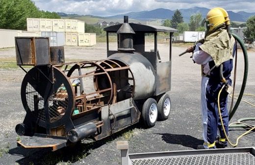 It has taken some work. The train arrived in bad shape, so Sena took it apart and brought it to Missoula to be sandblasted and repainted coal-black.