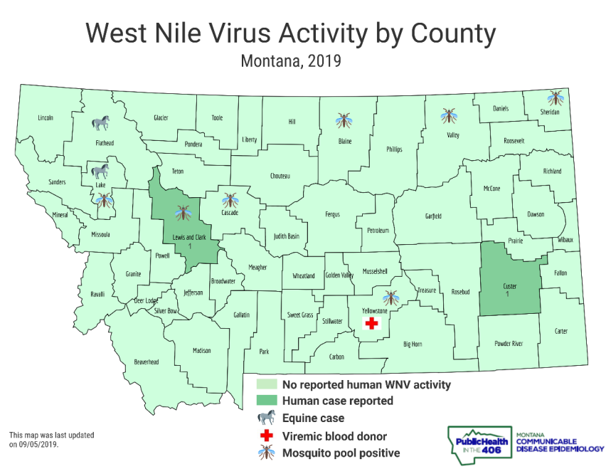 It is mosquito season in Montana. Mosquito bites aren’t just annoying. Depending on the species, mosquitos can carry disease. One of those diseases of concern in Montana is West Nile virus (WNV). Montana Department of Public Health and Human Services (DPHHS) recently announced the first two human WNV infections of the summer. In addition to human infections, mosquito pools in several counties have tested positive for the virus and a few counties have reported infections in horses.