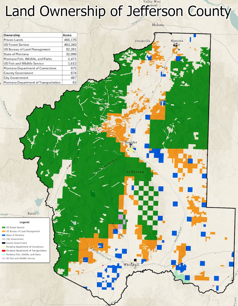 Jefferson County is just over a million acres in size. It sounds like a lot, but as far as the 56 counties of Montana go, that puts us at 43rd in terms of area. If you were to randomly pluck any acre of our county, I’d wager the chief attribute of that chunk of earth and your relationship with it would be its ownership. Land in Montana is broken into parcels – distinct, legally defined, and separated from others – the fundamental units of real estate. There are 13,245 in our county, according to the state Department of Revenue.