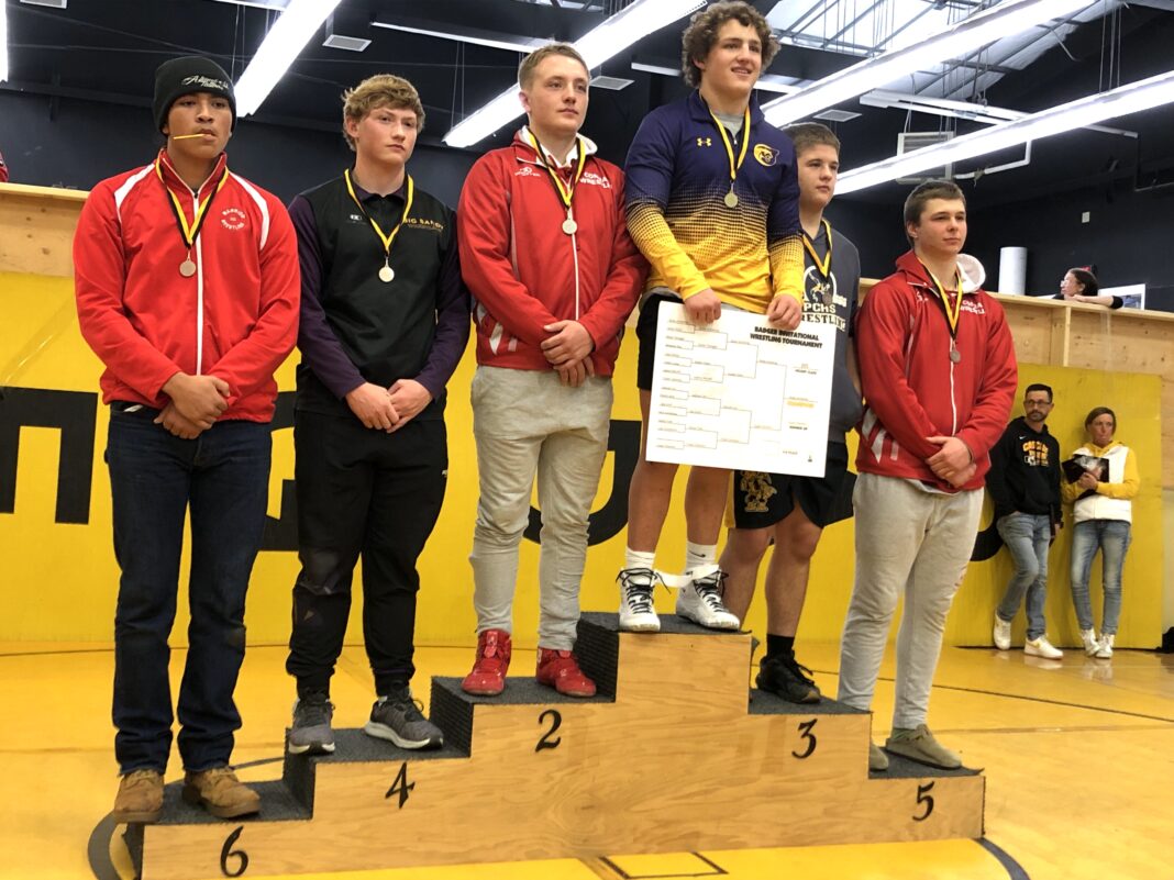 Brady Armstrong tops the podium as winner of the 205-pound class at the Badger Invitational Tournament in Cascade on Friday and Saturday, Dec. 1 and 2.